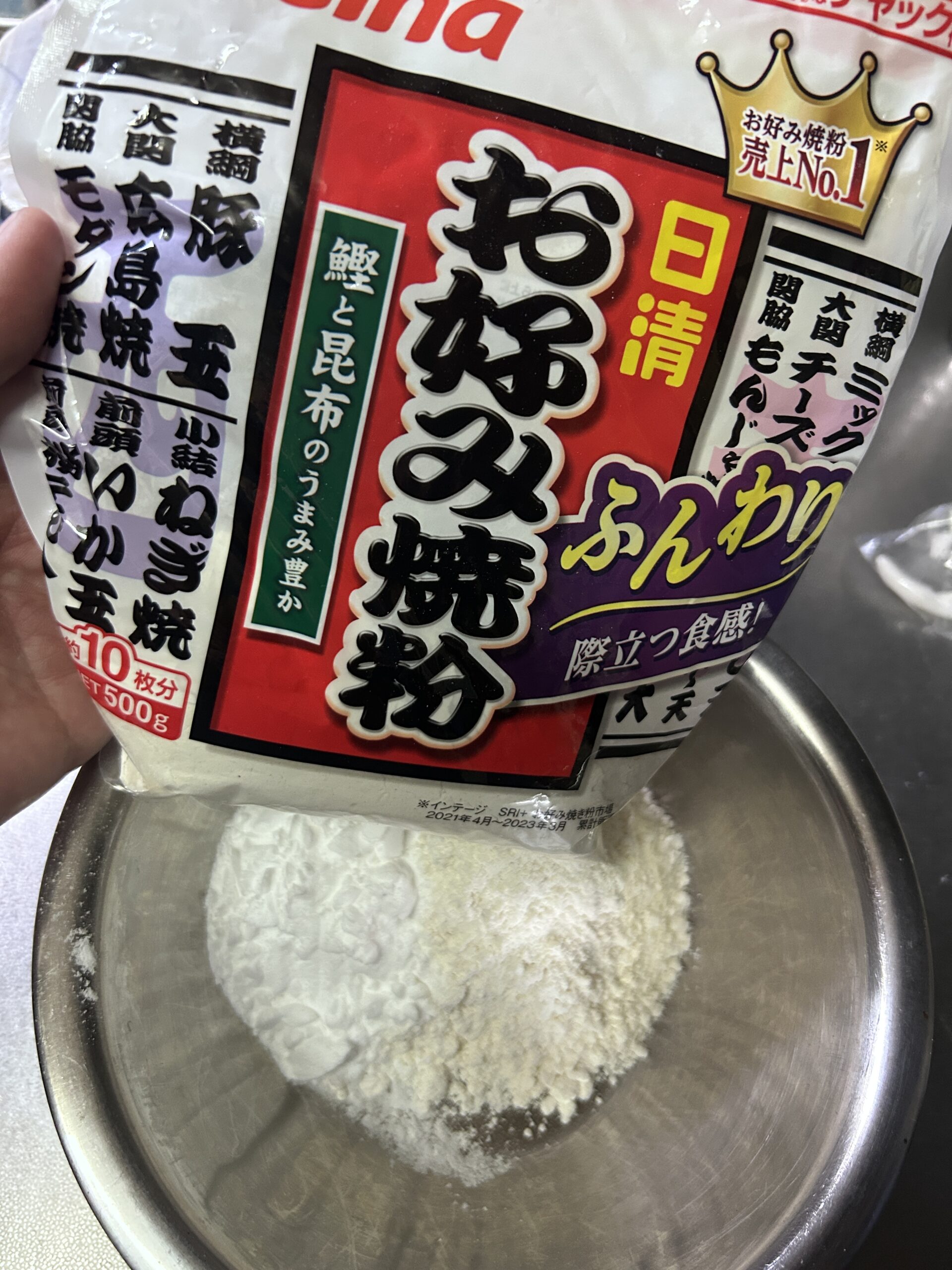 お好み焼き粉 + 片栗粉 + サラダ油少々。