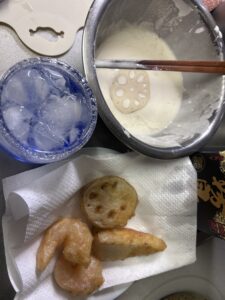 今夜、いざ揚げようとしたら「天ぷら粉がない!」というハプニングが発生。