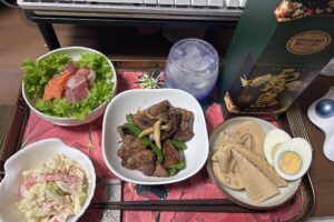 焼き物、煮物、生野菜など、簡単居酒屋メニュー。